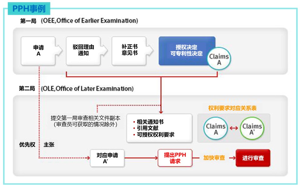 > 什么是专利审查高速路(PPH, Patent Prosecution Highway)? 申请人就同样的发明向2个以上国家的专利局提出专利申请并从某一个国家收到授权决定书或者可专利性通知书的情况,以此为基础向其他国家提出优先(加快)审查请求的制度。